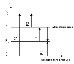 The relationship between absolute pressure, gauge pressure, negative pressure or vacuum is shown in the figure below: